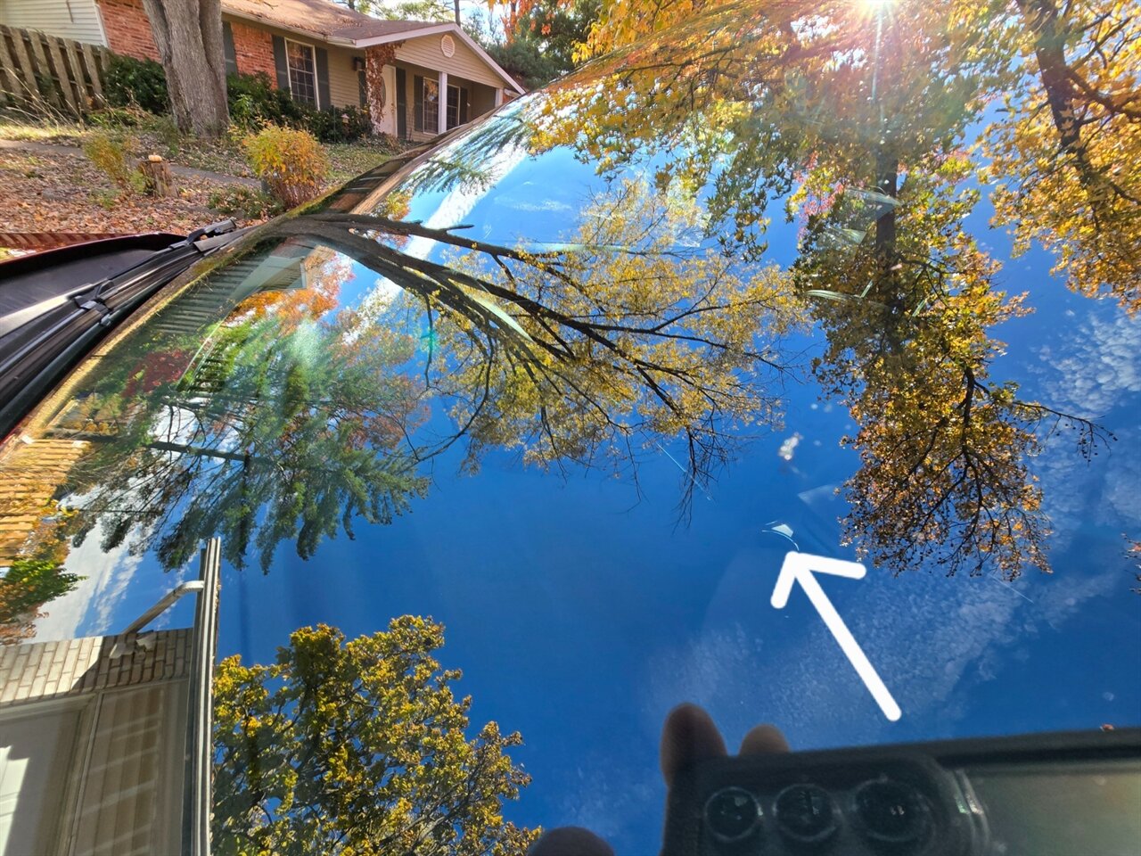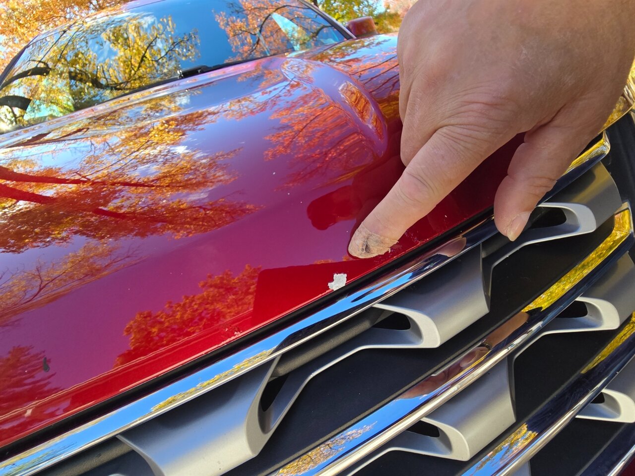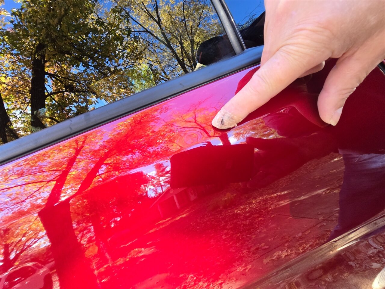 Vehicle has a few minor hail dings, barely noticeable and shown in the photos
